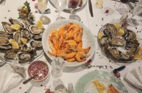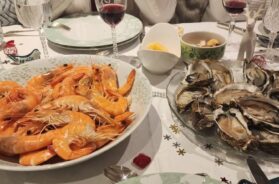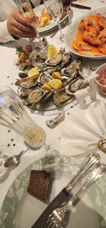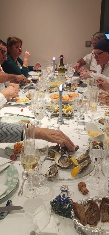Jeftinije jeste ali „pukosmo“ ipak dobrih 400 evra za cigarete i „klopu“, hajmo kući dosta je bilo trošenja para! Kad rekoh kući, nisam mislio na Pariz već kuću od prijatelja, gde dočekasmo i Novu Godinu. Ništa uzbudljivo, deset metuzalema za trpezom prepunom specijaliteta koje Francuzi obožavaju za praznike, kao što su ostrige, fuagra (jetra od tovljenih guski ili patki), dimljeni losos, škampi, punjeni puževi, sirevi, kao i lokalni specijaliet, neka vrsta testinina sa slaninom u topljenom siru.