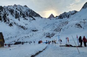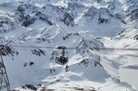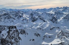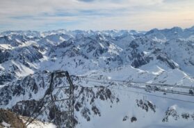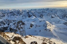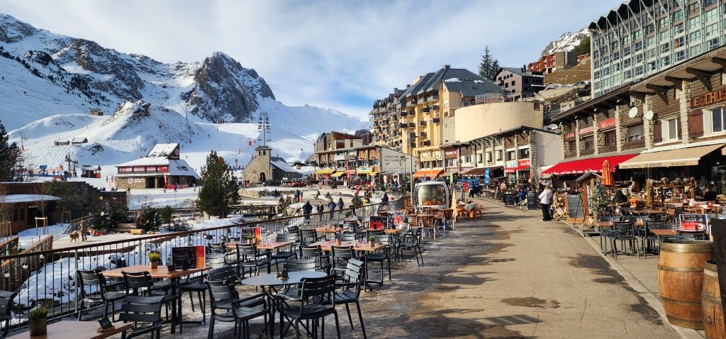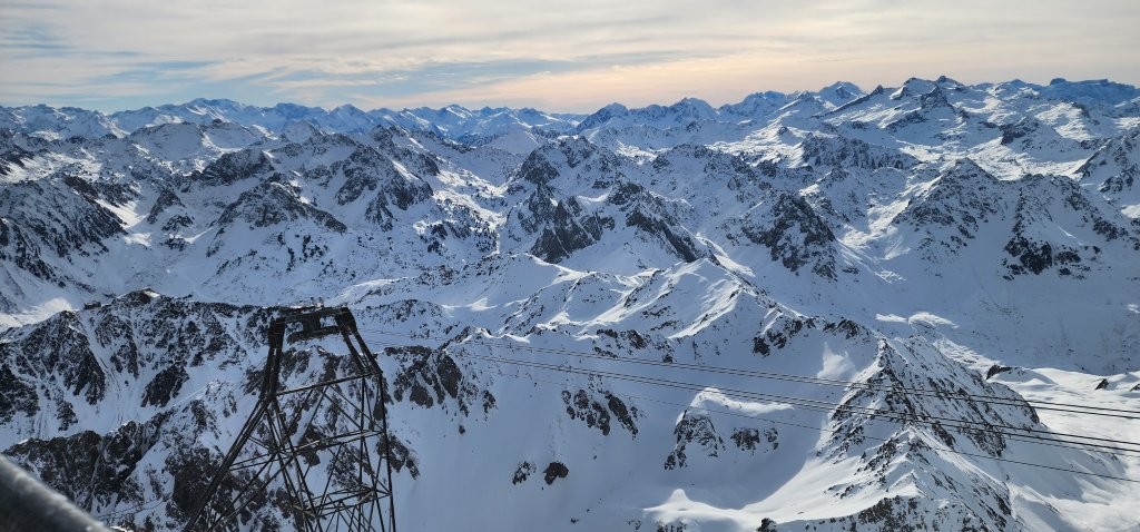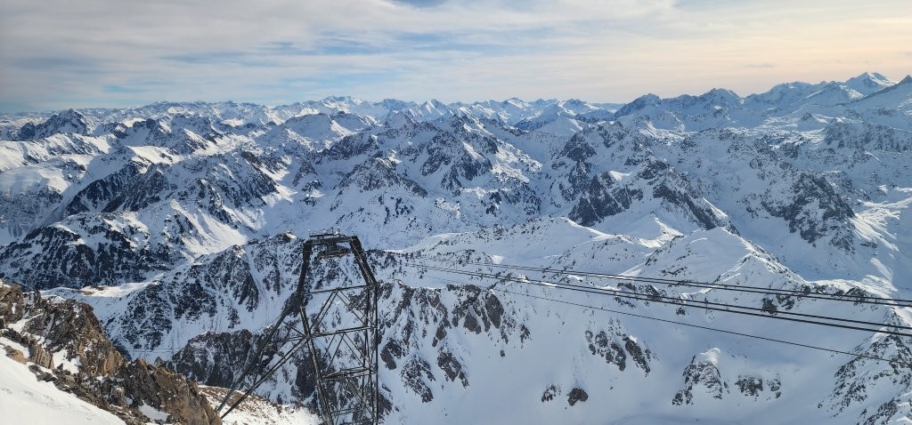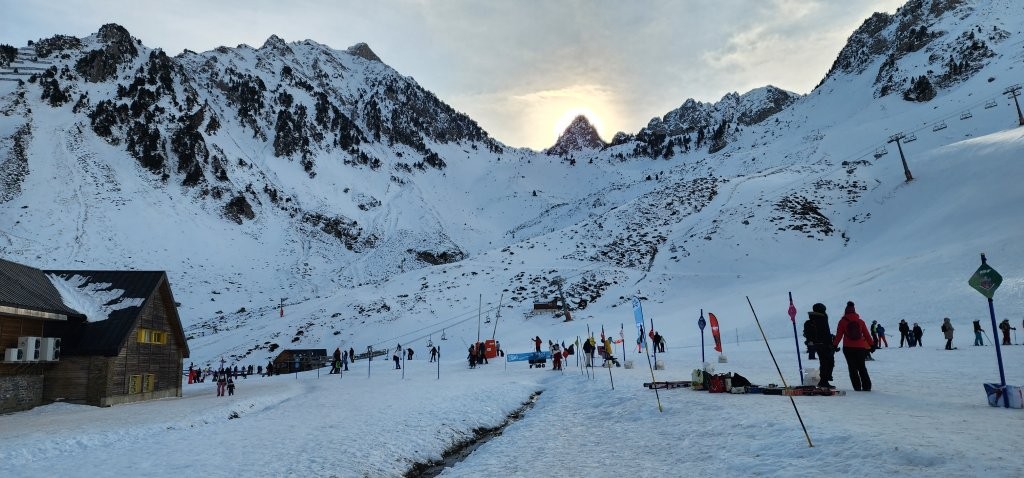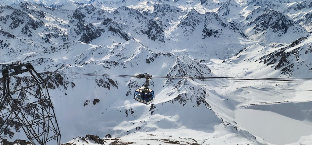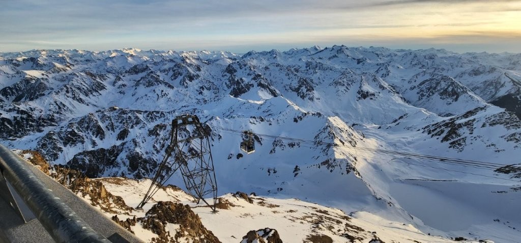 Elem, popesmo se do nekih 1.400 m nadmorske visine do spomenutog skijaškog centra, kome je po nedostajalo malo više snega. Jer Pirineji nisu Alpi, s istoka i zapada nalaze se dva mora, to jest Atlanski okean i Mediteran, tako da tople vazdušne struje brzo otope snežne padavine. Odatle se svi potrpasmo u kabinu sposobnu primiti četrdesetak putnika i pravac ka vrhu, uz obavezno presedanje na pola puta u drugu kabinu, iste veličine.