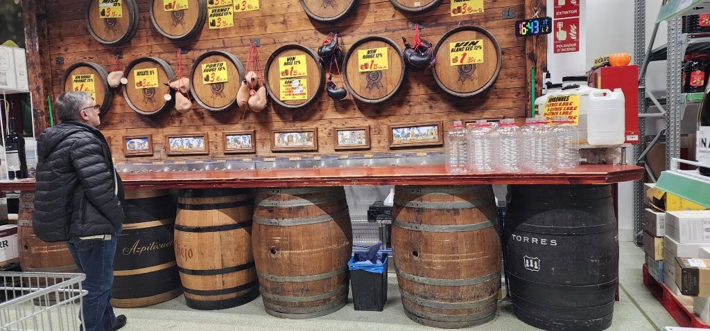Recimo cigarete u Francuskoj u proseku koštaju 13,5 evra paklica, dok su u Španiji upola jeftinije, što se odnosi i na maslinovo ulje (bidon od 5 lit platio sam 30 evra). Pametni Španci napuniše gradić silnim supermarketima u kojima su Francuzi većinski kupci, pored cigareta za gospođu Rajković (dozvoljena su četiri boksa po osobi, to jest 800 cigareta) i maslinovog ulja, kupismo nešto šunki, sireva, higijenskih proizvoda i veoma dobrog vina iz regiona Rioha!