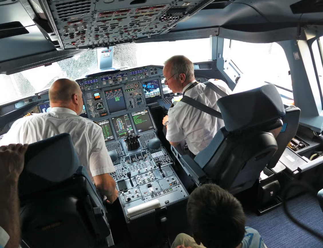 Jedna od prednosti Airbus aviona je sličnost kokpita kod svih modela, sa istim sistemom fly-by-wire. Zahvaljujući tome, pilotima je znatno olakšan prelazak sa A320 na A380 kroz obuku CCQ (Crew Cross Qualification).