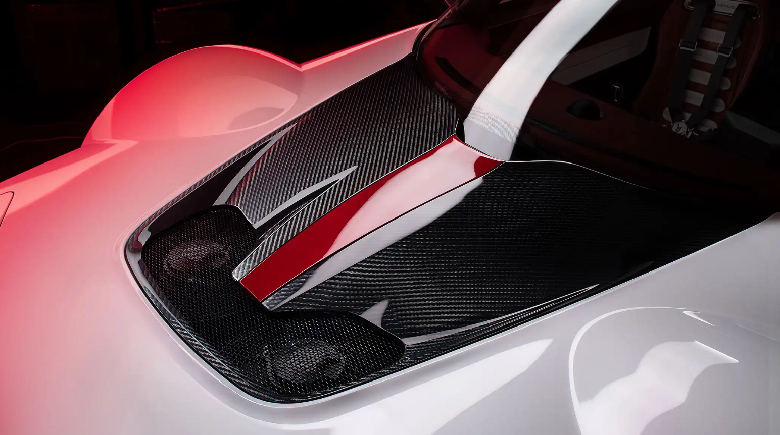 Unutrašnjost je inspirisana nautičkim formama. Osnovu čini kada u obliku trupa, dok je komandna tabla izvedena kao horizontalna paluba. Jedini instrument je digitalni obrtomer, koji u sredini table dopunjuje nautički kompas. Poseban vizuelni detalj je skulpturalna ručica menjača sa otvorenom mehanikom i vođicom. Preko nje se bira šest brzina unapred i jedna unazad. Vozač i suvozač sede u ugljeničnim školjkastim sedištima.