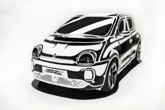 Vides je transformisao Twingo E-Tech u svojevrsni „živi“ crtež. Automobil sada nosi crno-belu grafiku koja ga čini nalik ilustraciji iz stripa ili crtanog filma. Ovaj „art car“ nastao je između 8. i 13. aprila upravo pred publikom, u okviru događaja na Jelisejskim poljima.